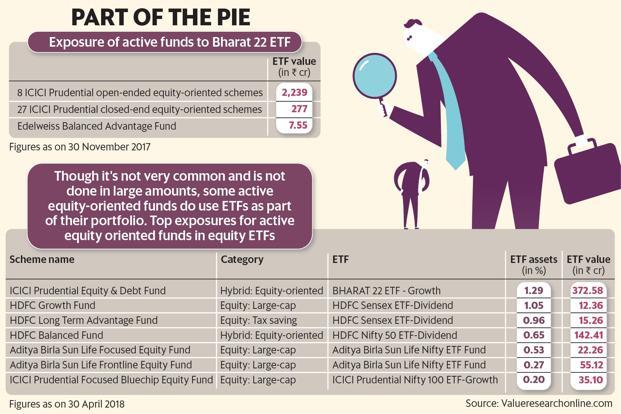 In November 2017, the government launched Bharat 22 ETF as part of its economic reform and disinvestment program, and ICICI AMC was chosen to create and manage the same. The ETF received applications worth around ₹32,000 crore and shares worth ₹14,500 crore were allotted, according to a government release. We spoke to experts to find out why active equity funds might buy equity ETFs in their portfolio and if it is a viable strategy.